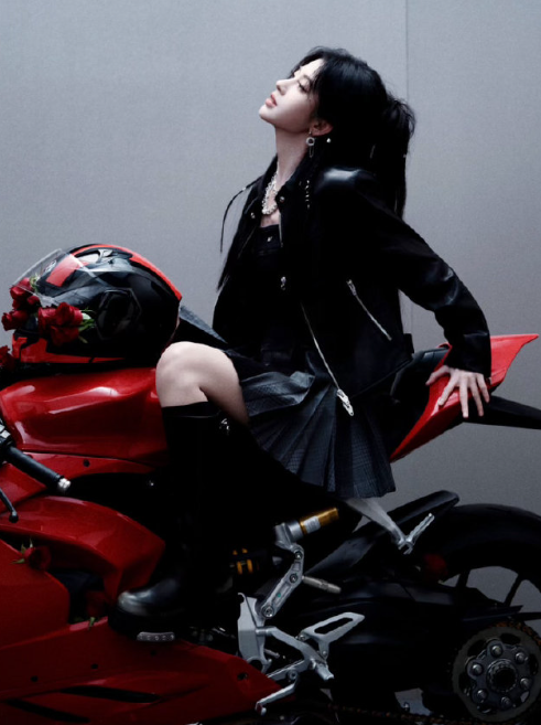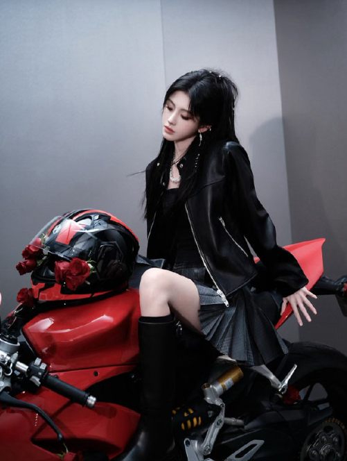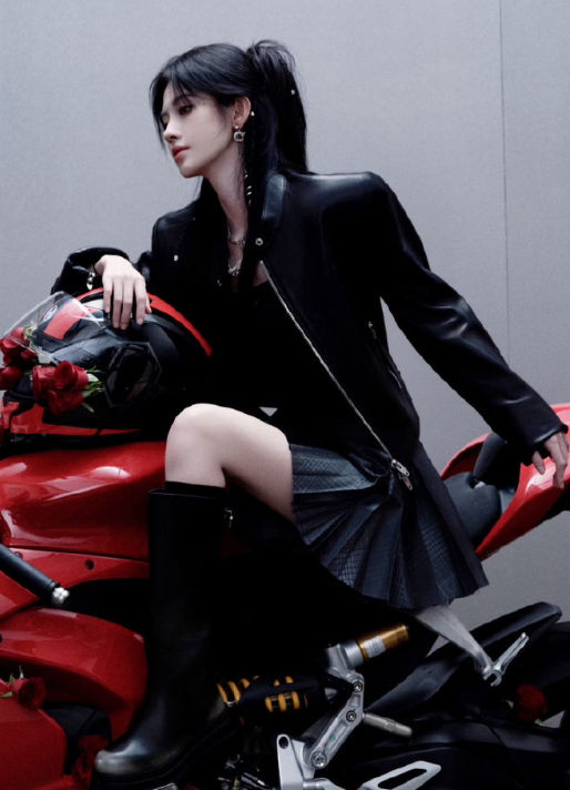 高档性感是「甜 + 野」,鞠婧祎的机车穿搭