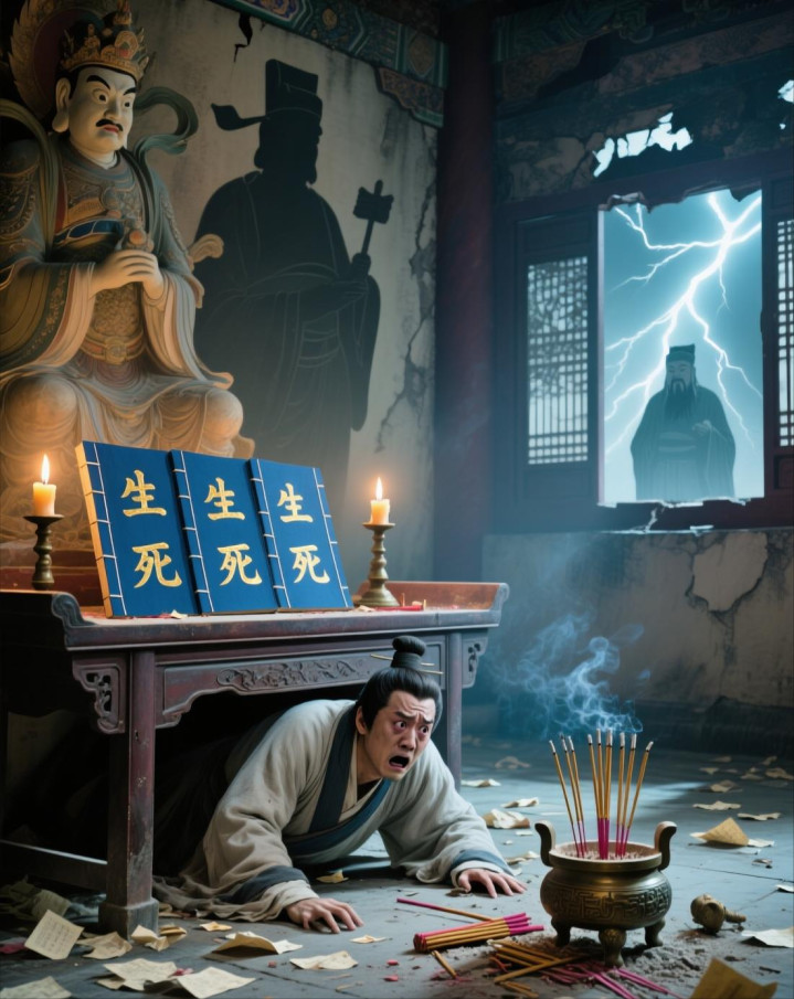 他急得满头大汗,脑子里乱成一团。忽然,他灵机一动——既然存一火簿上写着他的名字,那他把这一页撕掉,不就行了吗?阎王爷找不到他的名字,当然就勾不了他的魂!