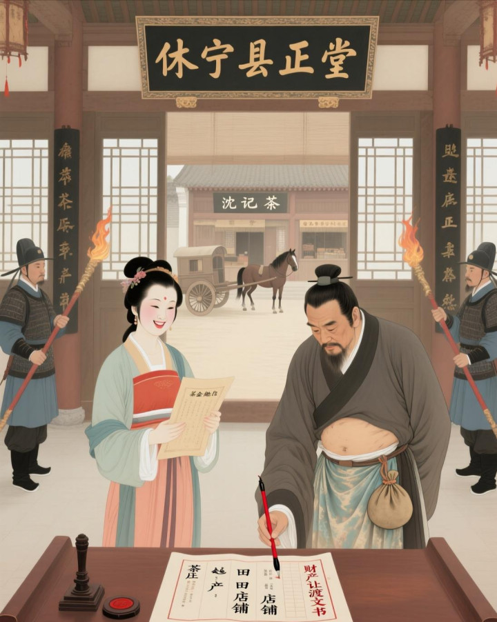 第二天一早,马德厚便带着赵金凤去了县衙,在县令的公证下,将名下悉数的茶庄、郊野、房产、店铺,一皆转到了赵金凤名下。证据信得过,红印画押,从这一刻起,马德厚名下再无半分家产,成了一个更无长物的穷光蛋。