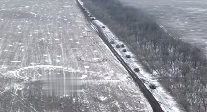 推土机通事后,主力运行鱼贯干涉。一支坦克排搭配D9,后续又跟进更多车辆,队形被地形“压成一条线”。