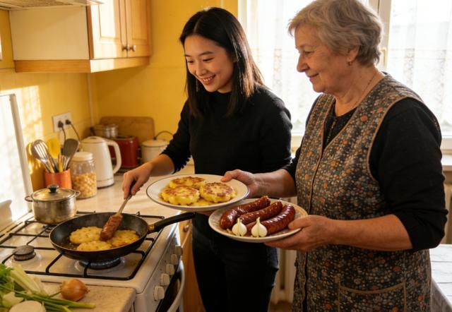 公寓附进的茕居大姨,见我不会作念当地饭菜,时常常会端来一盘刚出锅的土豆肉饼、一份熏制的猪肚蒜肉肠,耐性教我当地的烹调手法,莫得涓滴荒芜与客套。