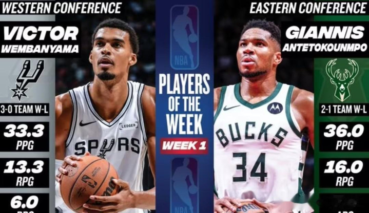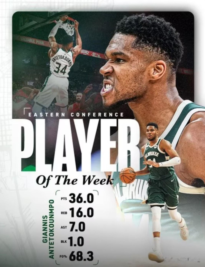 赛季初的字母是不错与文班亚马并驾都驱的两位东西部怪兽!赛季初文班亚马与字母哥也都各自打出过东西部周最好球员的好意思誉!那时的字母哥阐明极具统治力,个东说念主不错交出36分16篮板7助攻的豪华数据,况兼成为NBA首位在赛季前三场就砍下100分40个篮板15助攻的球员!其时的字母哥个东说念主数据比文班亚马都恐怖!