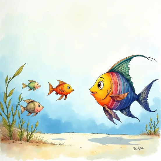 一条私有的彩虹鱼学会与其他鱼共享娇媚鳞片。