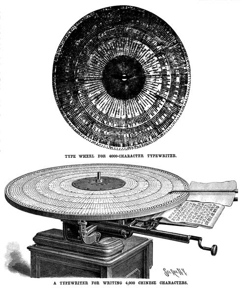 它们的弊病过于昭彰,其基本责任旨趣不是打字,而是“拾字”,即在一个包含数千个常用汉字的字盘上,寻找到对应汉字,通过机械安装将其陈列印刷出来,号称机械版的活字印刷术。