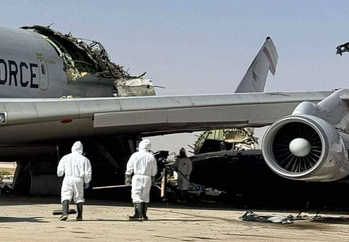 网罗巧妙传的好意思军E-3预警机遇袭受损画面,但尚未经好意思国官方证实